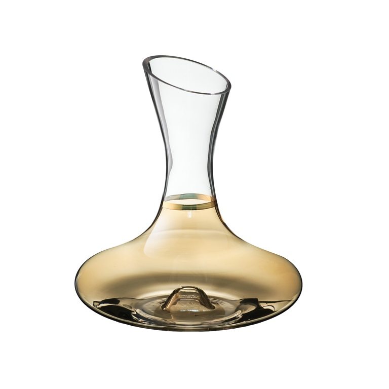 Γυάλινη καράφα Charisma 1600 ml με διακριτικές αποχρώσεις κεχριμπαριού, χαρίζοντας μια αίσθηση ζεστασιάς και πολυτέλειας. Οι χρυσαφένιες ανταύγειες στη βάση της δημιουργούν ένα εντυπωσιακό παιχνίδι φωτός, που αναδεικνύει το περιεχόμενο.
