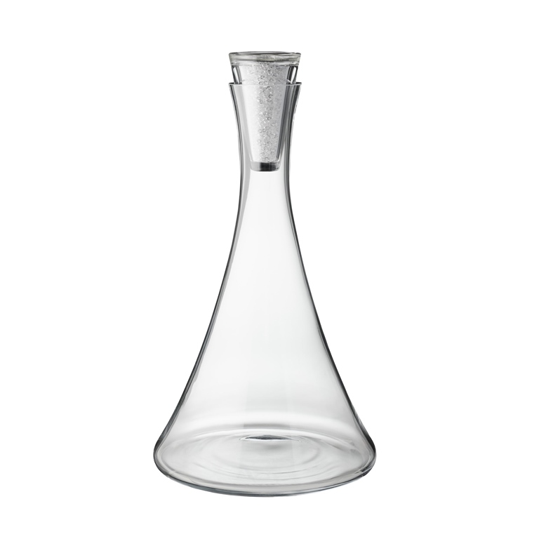 Καράφα 1 lt γυάλινη ανάγλυφη με κρυσταλλάκια στο πώμα, ύψους 30 εκ.