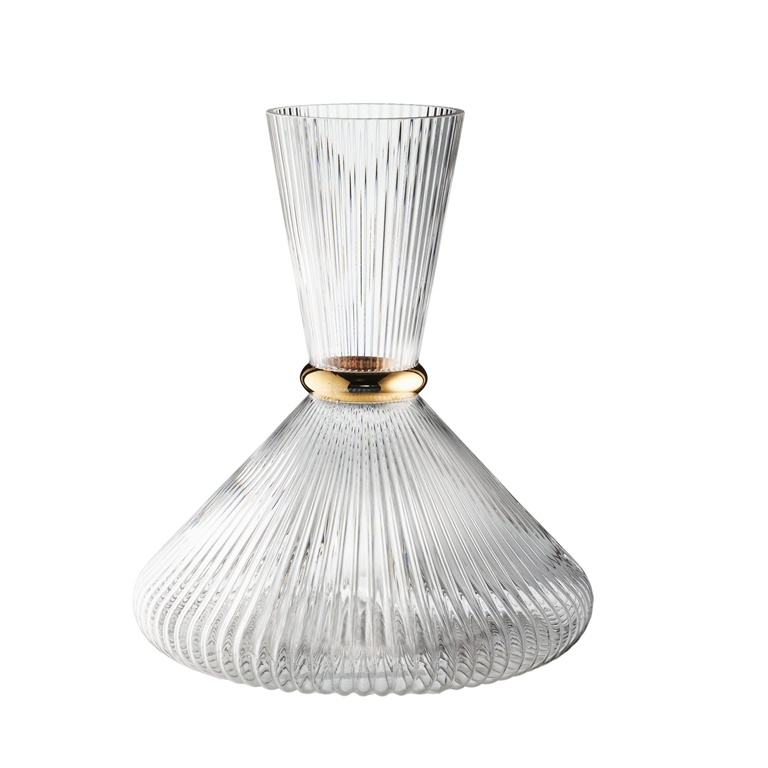 Καράφα 1 lt γυάλινη ανάγλυφη με χρυσό δαχτυλίδι, ύψους 25 εκ.