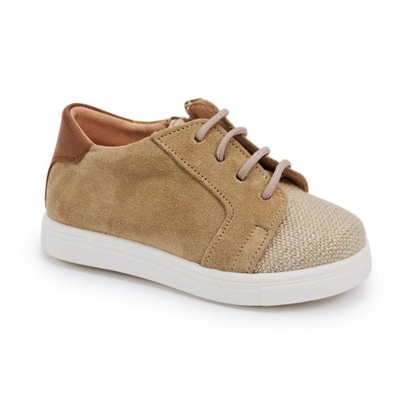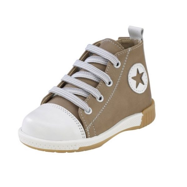 Ανατομικά παπουτσάκια βάπτισης, καστόρινα, με φερμουάρ στο πλάι για αγόρι σε χρώμα Βεραμάν - Εκρού.