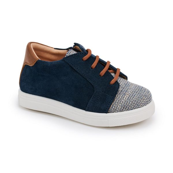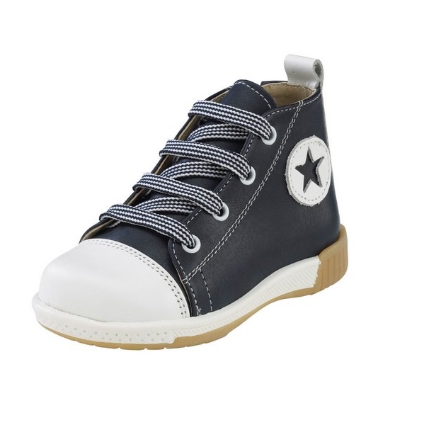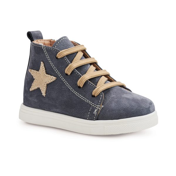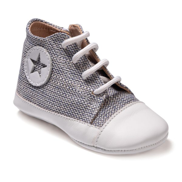 Ανατομικά παπουτσάκια βάπτισης, καστόρινα, με φερμουάρ στο πλάι για αγόρι σε χρώμα Mπλε-Γκρί.