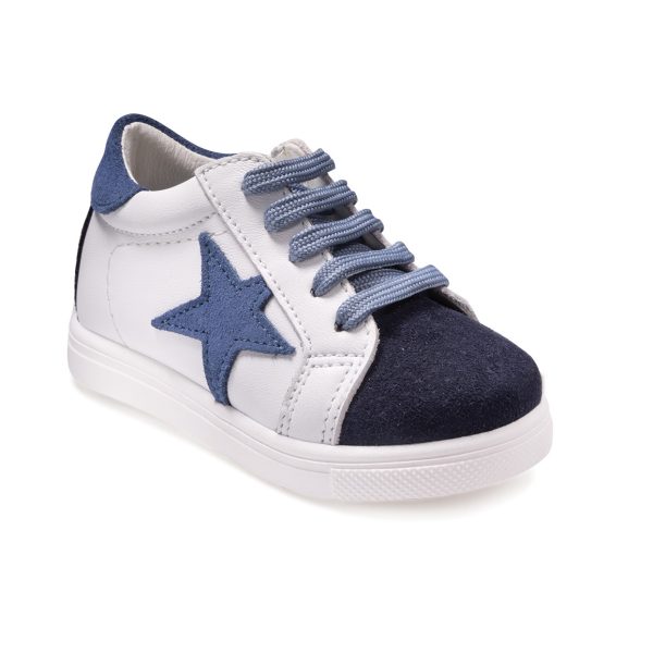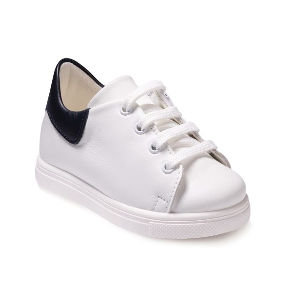Ανατομικά παπουτσάκια βάπτισης, με φερμουάρ στο πλάι, για αγόρι, σε χρώμα Λευκό • Ραφ • Μπλε.