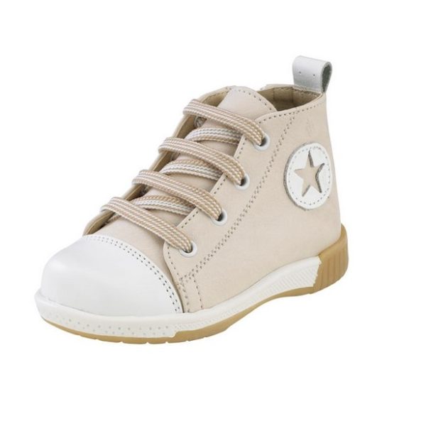 Ανατομικά παπουτσάκια βάπτισης, καστόρινα, με φερμουάρ στο πλάι για αγόρι σε χρώμα Μπέζ-Εκρού.