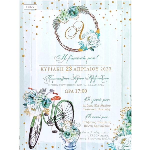 Προσκλητήριο βάπτισης με θέμα ποδήλατο