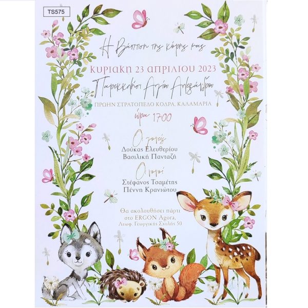 Προσκλητήριο βάπτισης με θέμα ζωάκια του δάσους