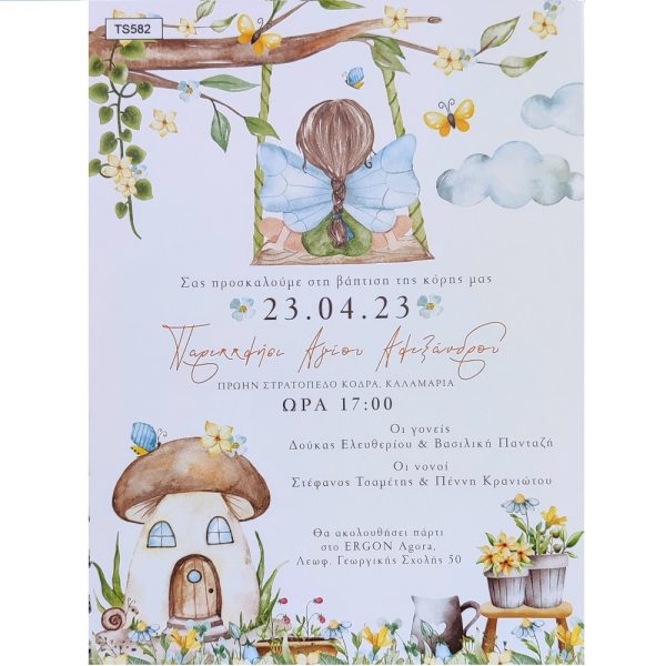 Προσκλητήριο βάπτισης με θέμα νεράιδες