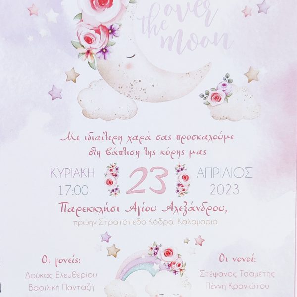 Προσκλητήριο βάπτισης Over the moon
