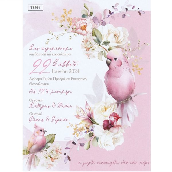 Προσκλητήριο βάπτισης παπαγάλος φλοράλ