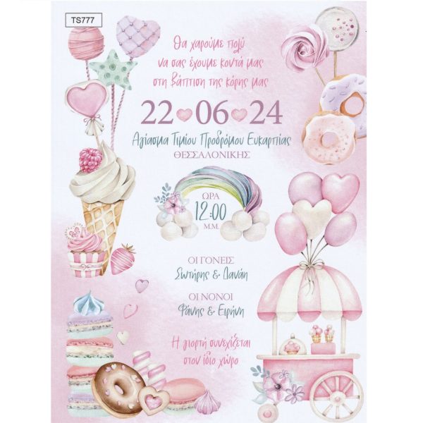 Προσκλητήριο βάπτισης με θέμα Ζαχαρωτά