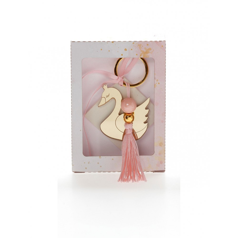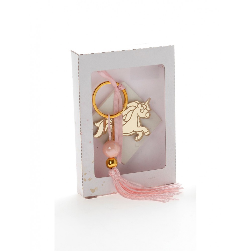 Μπομπονιέρα σε χάρτινο κουτάκι ροζ με αρωματική βάση ρόμβος και χρυσό πλέξιγκλας με σχέδιο κύκνος ή μονόκερος.