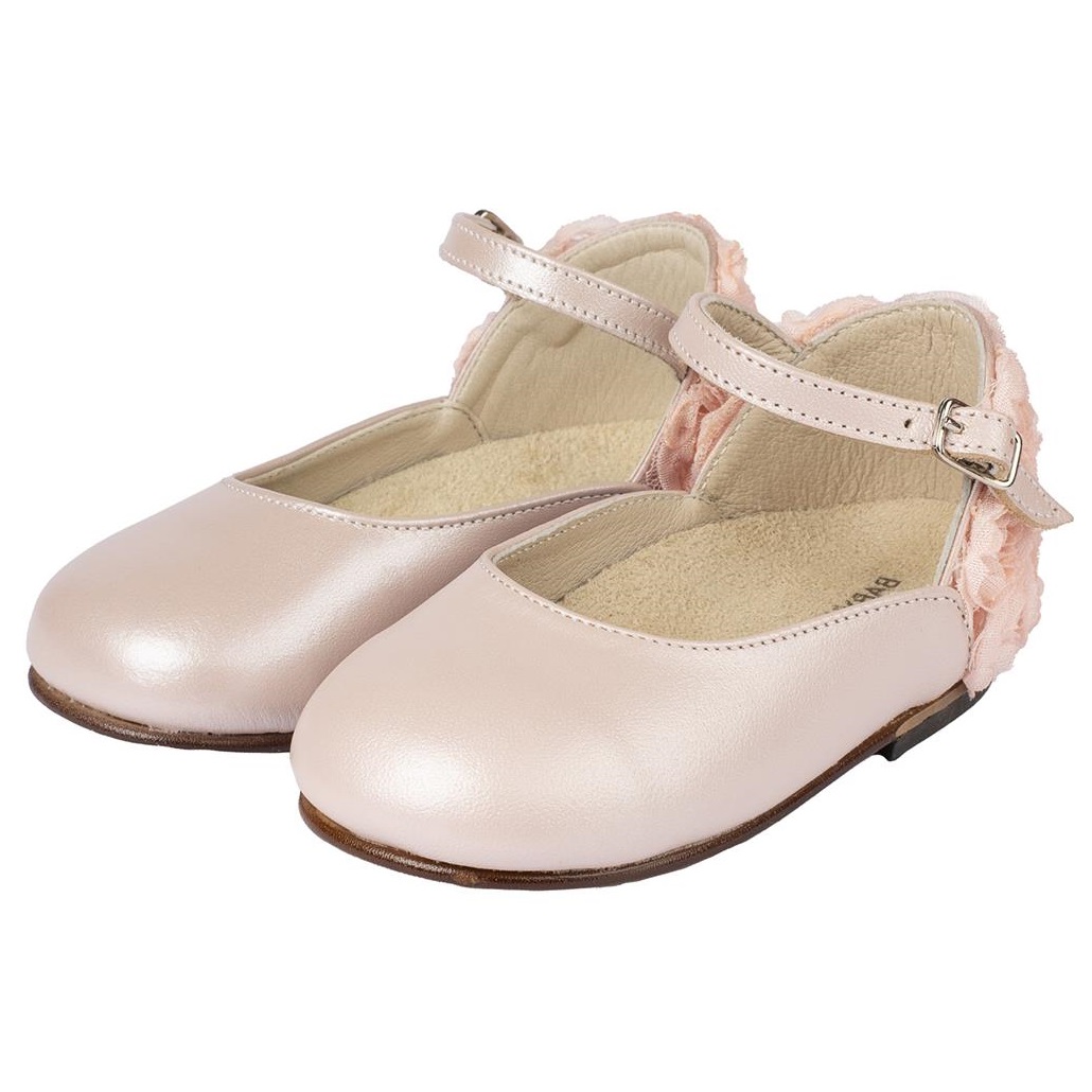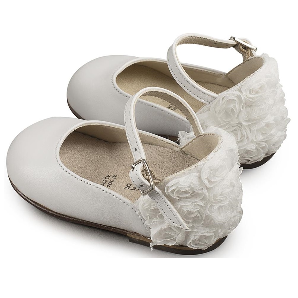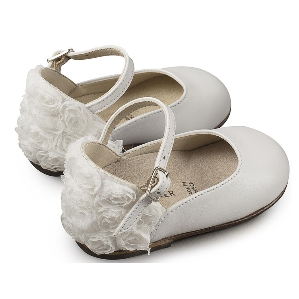 Δερμάτινο Γαλλικό Γοβάκι με Διακοσμημένη Φτέρνα από Chiffon Λουλούδια σε Λευκό Χρώμα της εταιρίας Babywalker.