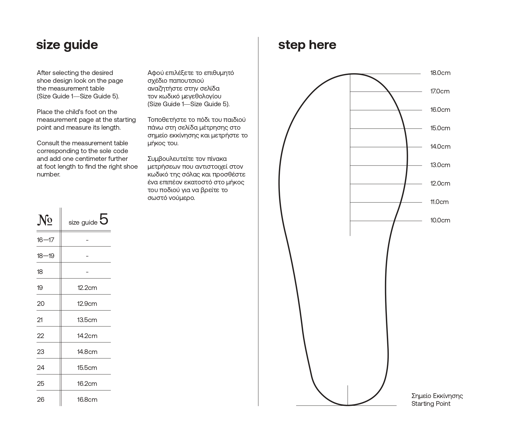 Συμβουλευτείτε το μεγεθολόγιο και στο τελευταίο βήμα πριν την αποστολή της παραγγελίας σας μην παραλείψετε να συμπληρώσετε στο πεδίο «Σημειώσεις Παραγγελίας», το νούμερο που σας ενδιαφέρει.