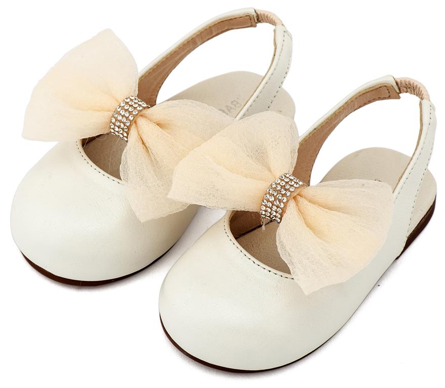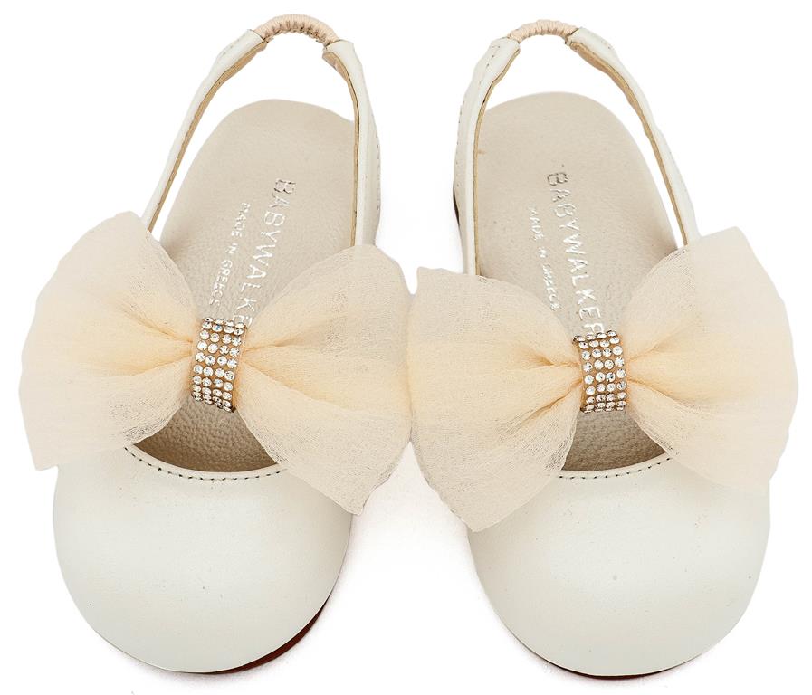 Δερμάτινο Γαλλικό Σαμπό με Φιόγκο Οργάντζας και Στρας σε Εκρού Χρώμα της εταιρίας Babywalker.