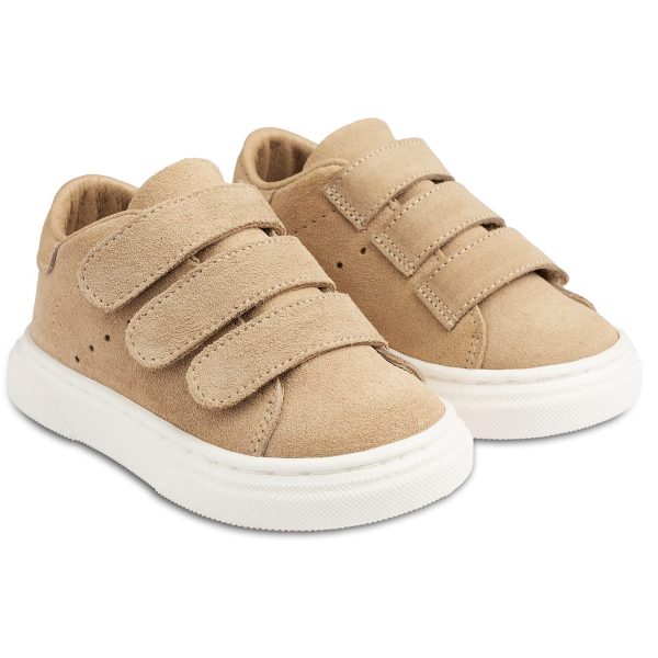 Δερμάτινο Mονόχρωμο sneaker της εταιρίας Babywalker με Τριπλή Μπαρέτα Χρατς σε Μπεζ Χρώμα