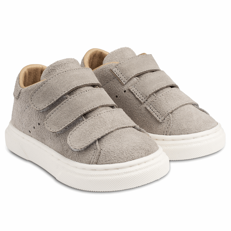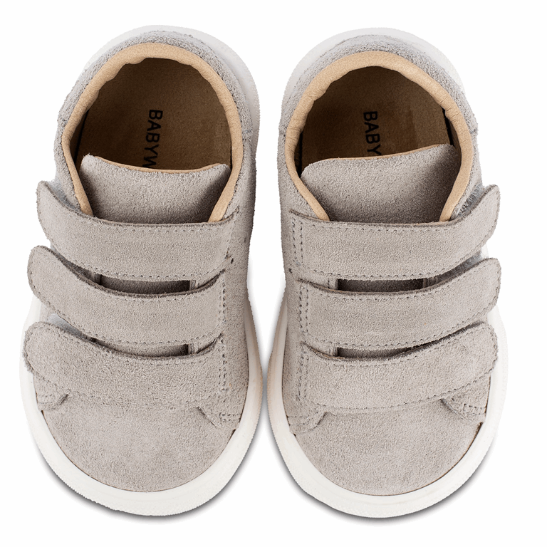 Δερμάτινο Mονόχρωμο sneaker της εταιρίας Babywalker με Τριπλή Μπαρέτα Χρατς σε Γρκι Χρώμα