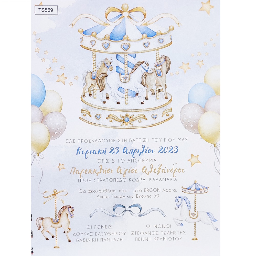 Προσκλητήριο βάπτισης με θέμα Carousel