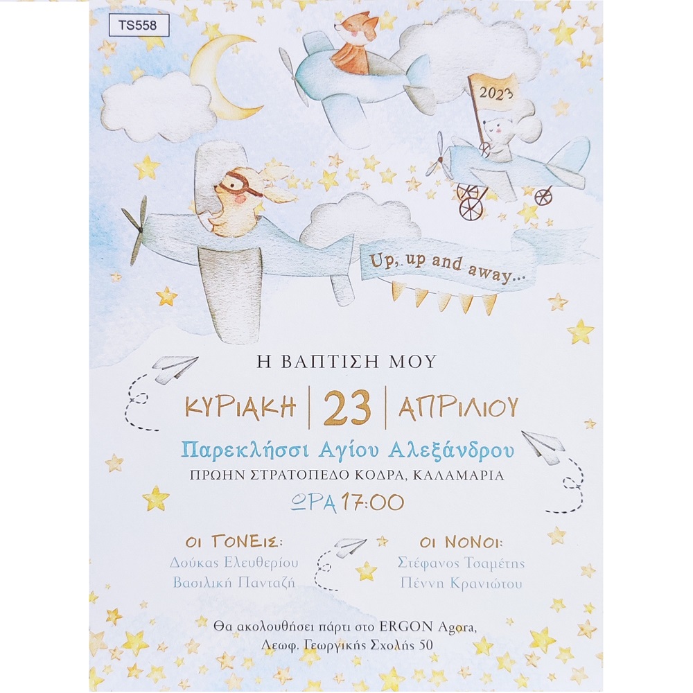 Προσκλητήριο βάπτισης με θέμα Cute Animals Flying High