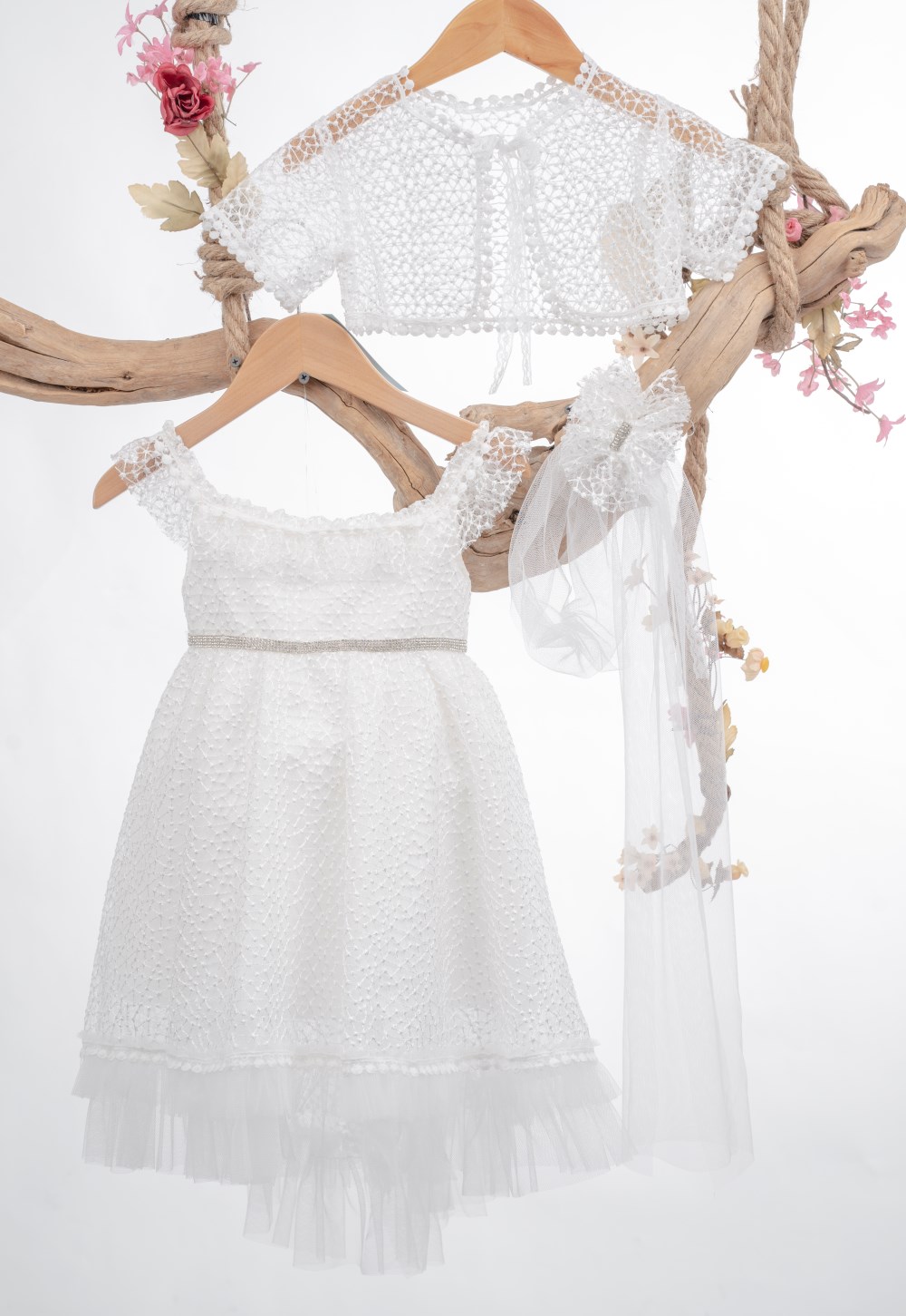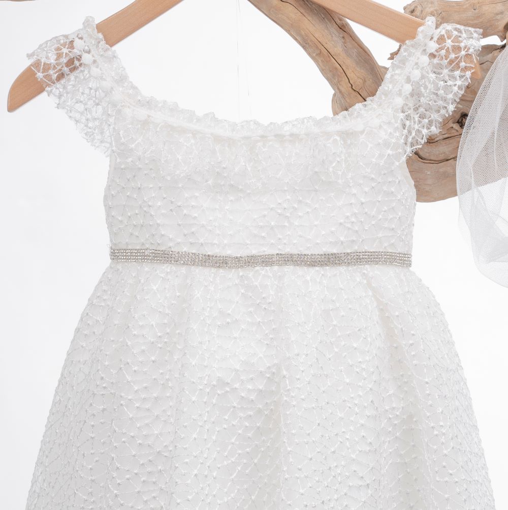 Βαπτιστικό φόρεμα ελληνικής κατασκευής από την εταιρεία Mak baby σε λευκό χρώμα.
