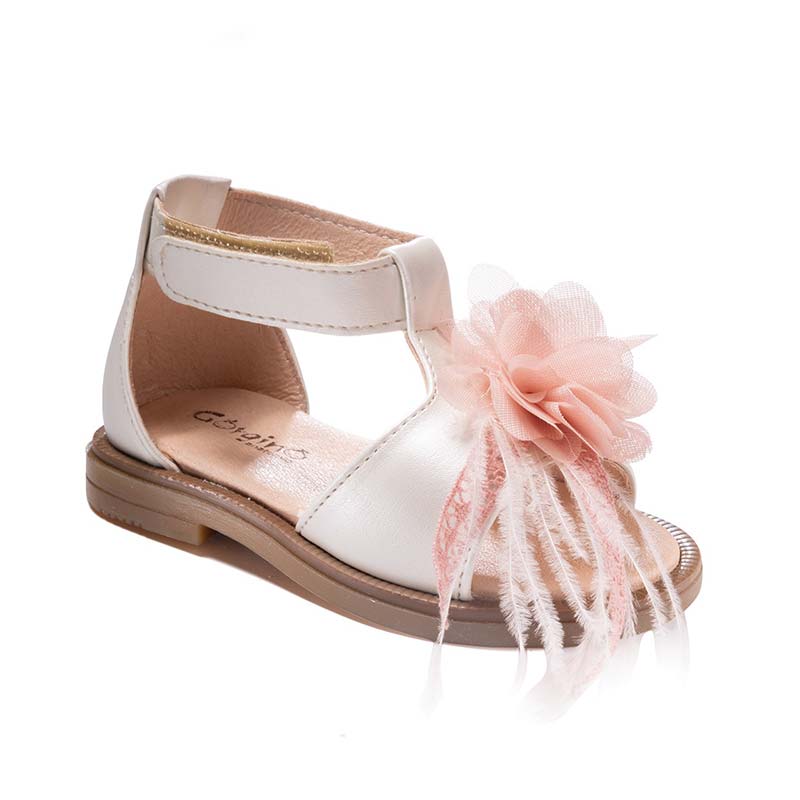 Ανατομικά πέδιλα βάπτισης για κορίτσι, σε χρώμα Εκρού – Μήλο.