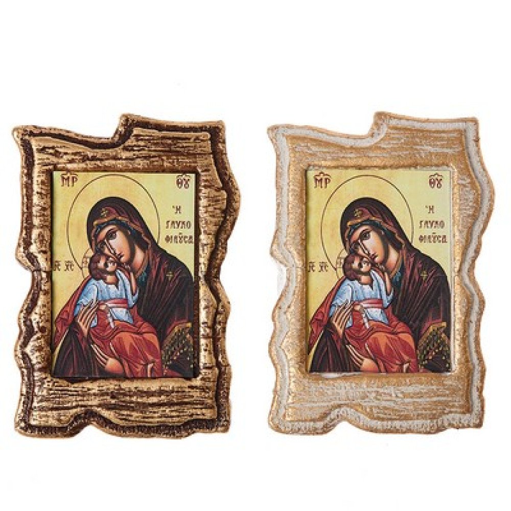 Κεραμική εικόνα με ιδιαίτερο περίγραμμα, ιδανική για μπομπονιέρα βάπτισης, διαστάσεων 9 x 6 εκ., σε διάφορα χρώματα και με εκτύπωση Αγίου της επιλογής σας.