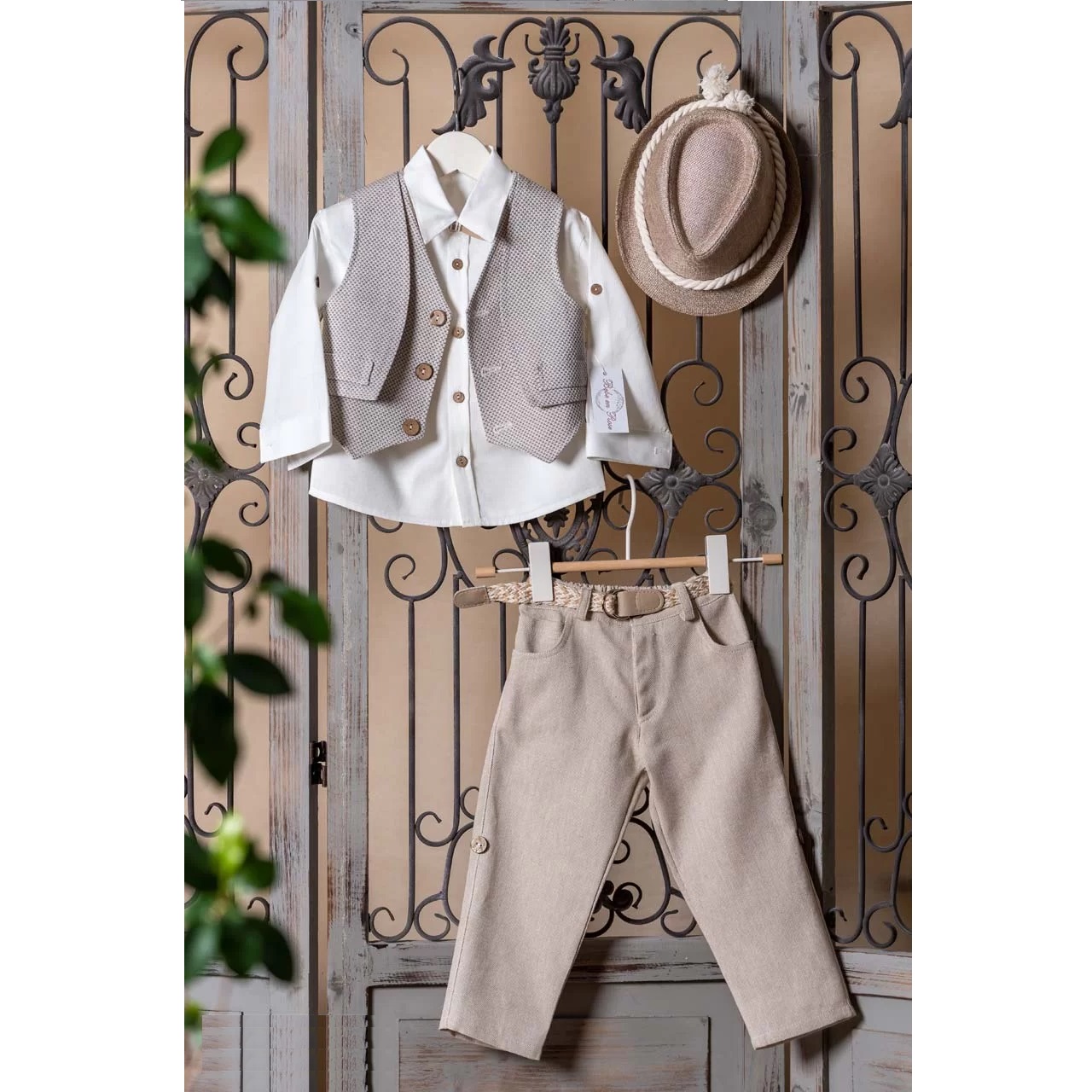 Βαμβακερό κοστούμι βάπτισης με κουμπάκι στο πλάι και θηλιά ώστε να γίνεται σορτσάκι