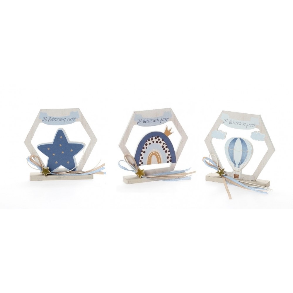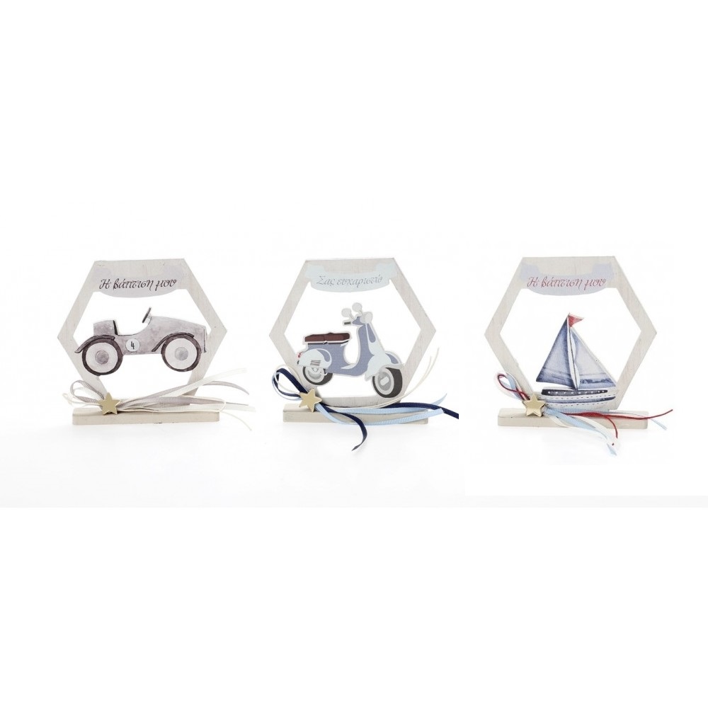 Μπομπονιέρα εξάγωνο σε βάση 11χ9 με διάφορα θέματα.