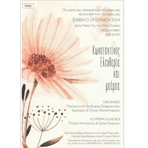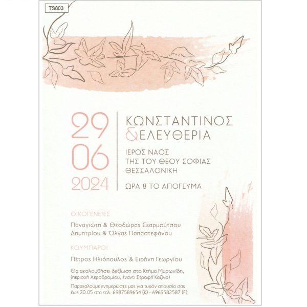 Προσκλητήριο γάμου με θέμα Pastel floral, σε χαρτί Old Mill Premium White 250gr σε διάσταση 19,5×14,5 cm.