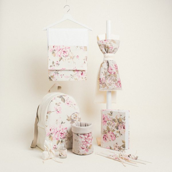 Μπομπονιέρα πουγκί με βάση, διαστάσεων 8 x 12 cm, συνδυασμένο με το σετ βάπτισης Κλασικό Φλοράλ.
