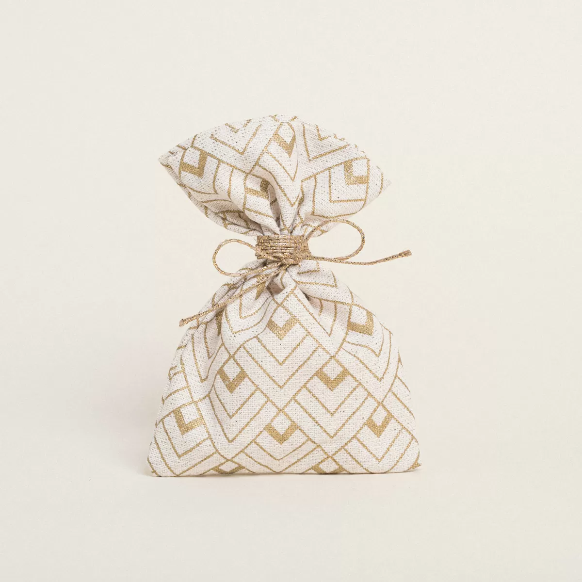 Μπομπονιέρα πουγκί εκρού με χρυσούς κύβους