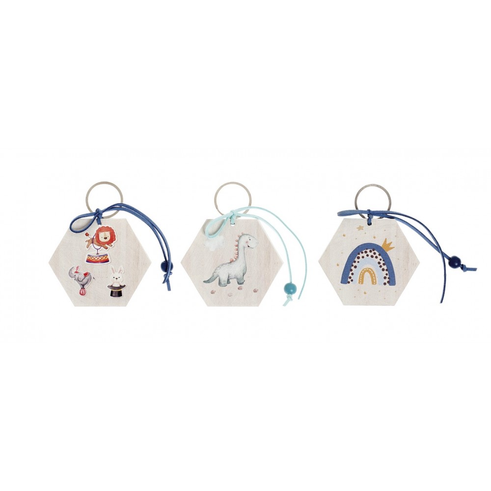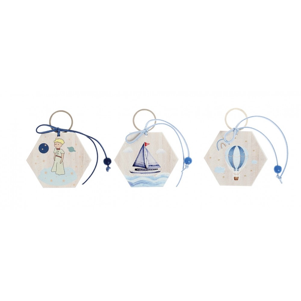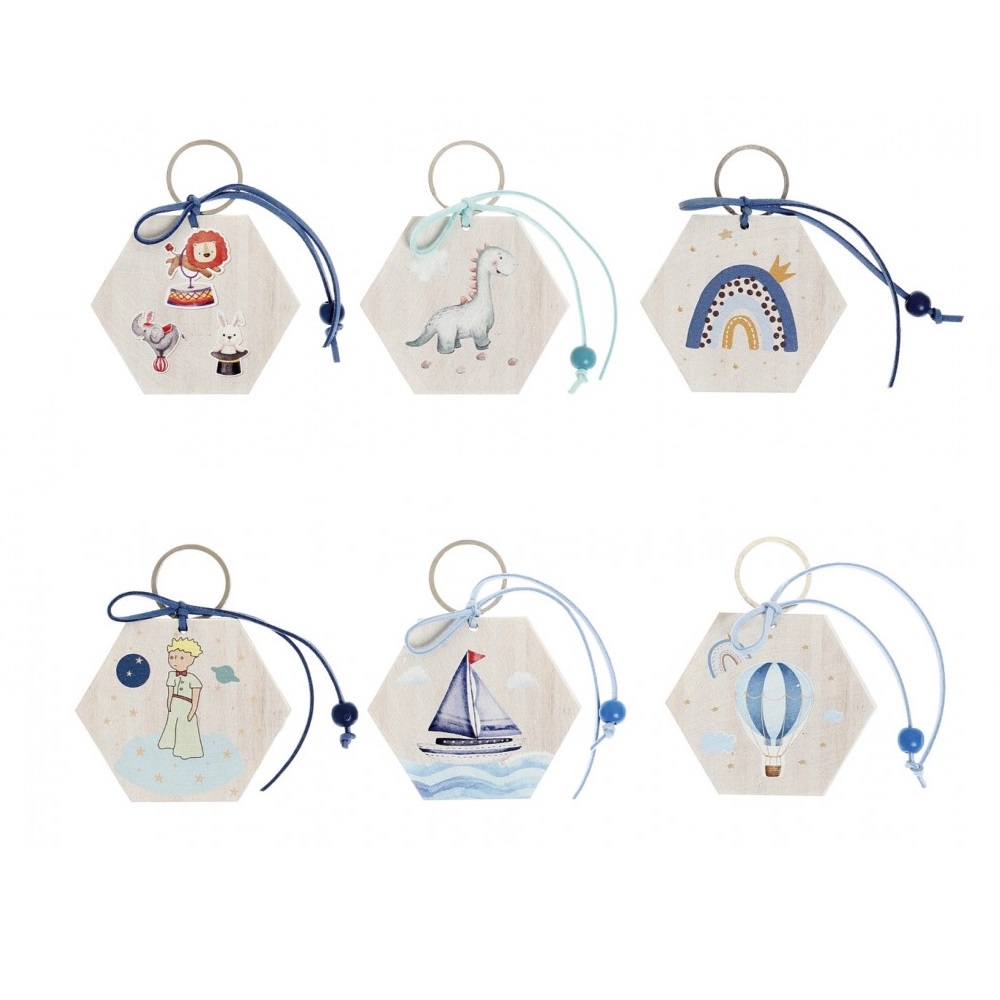 Μπομπονιέρες βάπτισης μπρελόκ εξάγωνο 8χ8 εκ με διάφορα θέματα.