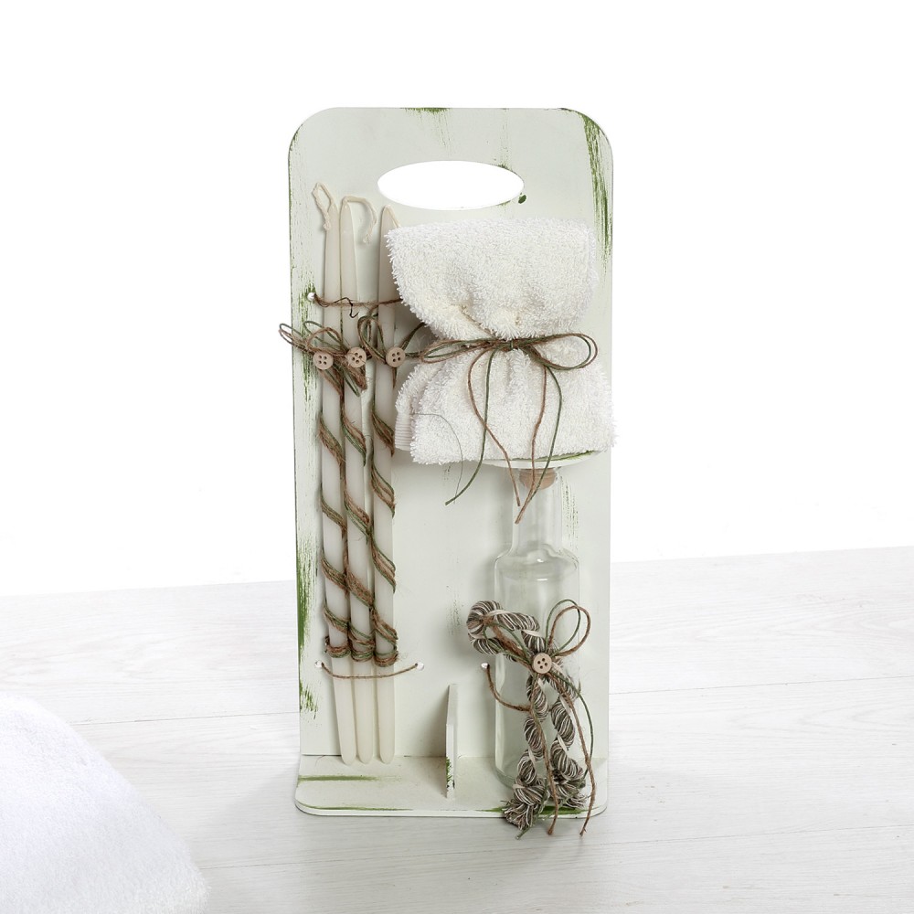 ✔ Σετ λαδιού που περιλαμβάνει μπουκαλάκι, σαπούνι και κεράκια διακοσμημένα στο ίδιο ύφος.