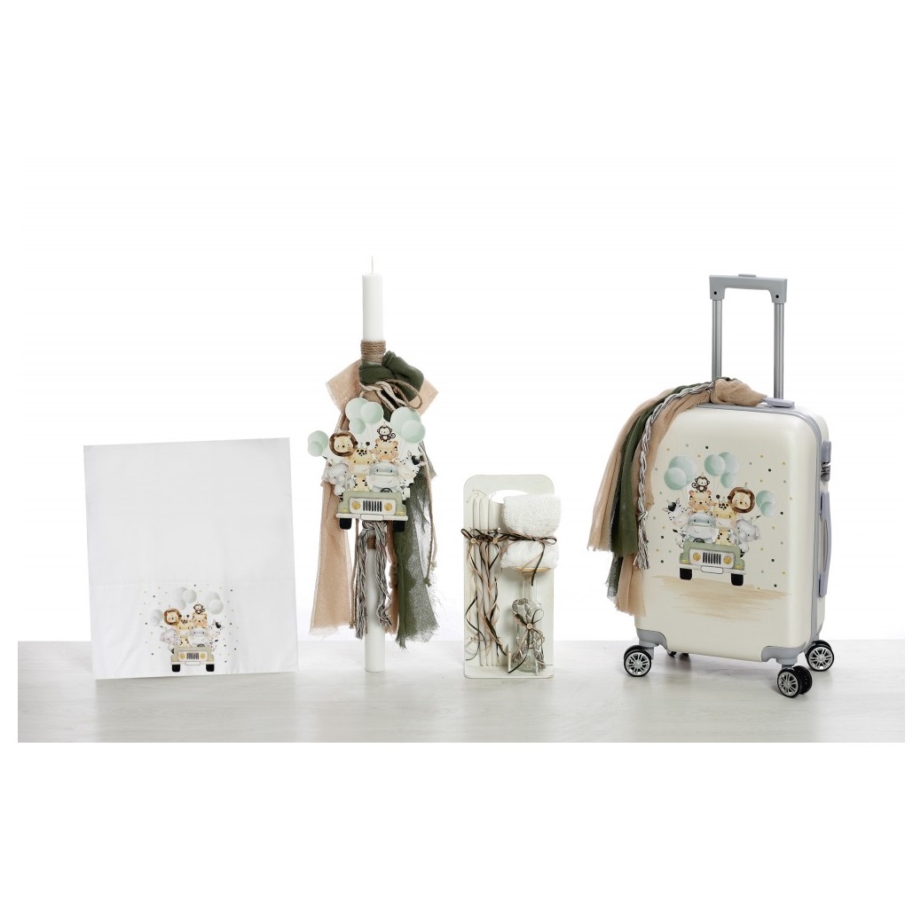 Πακέτο βάπτισης με θέμα Σαφάρι, με εκτυπωμένη βαλίτσα (όχι αυτοκόλλητο)