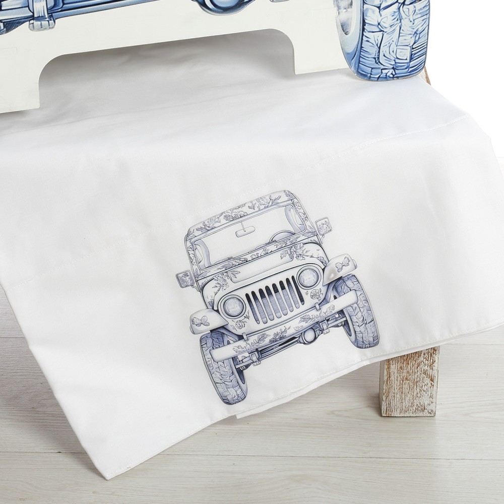 Λαδόπανα: Πλήρες σετ (πετσέτες, εσώρουχα) από 100% βαμβάκι με τυπωμένη την παράσταση του μπλε Jeep.