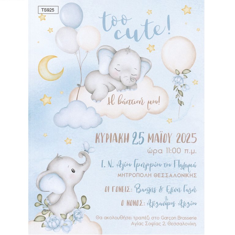 Προσκλητήριο βάπτισης με θέμα ελεφαντάκι