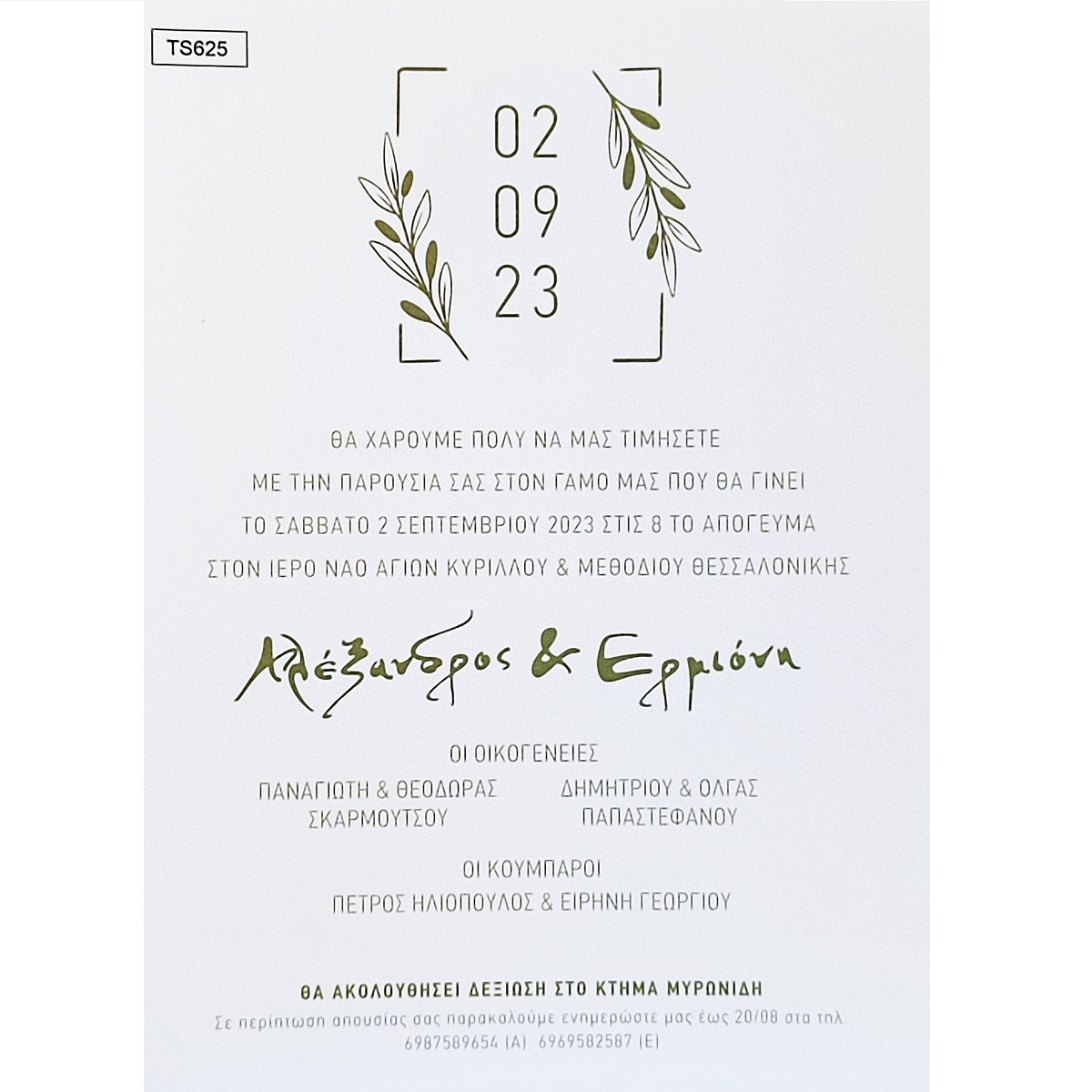 Προσκλητήριο γάμου με κλαδιά ελιάς