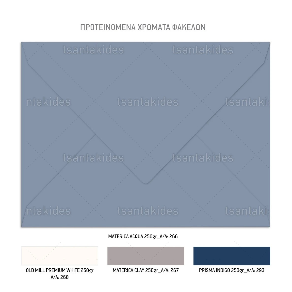 Η τιμή είναι τελική και περιλαμβάνεται φάκελος σε χρώμα MATERICA ACQUA 250gr– A/A 266.