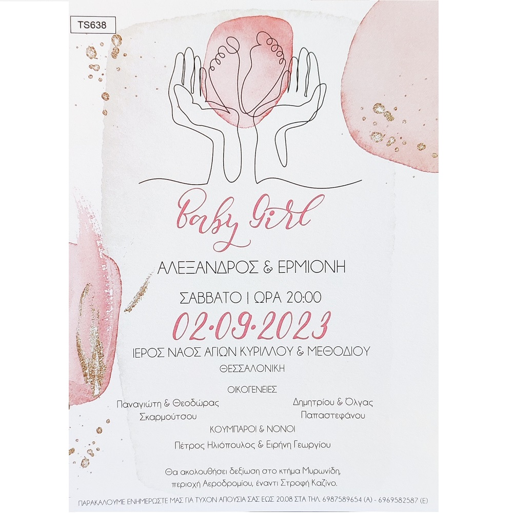 Προσκλητήριο γάμου & βάπτισης σε abstract ύφος με γραμμικά bebe ποδαράκια σε ροζ χρωματισμούς, σε χαρτί Old Mill Premium White 250gr σε διάσταση 19,5×14,5 cm.