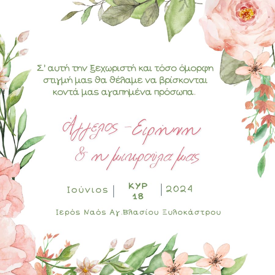 Στην παρακάτω φόρμα συμπληρώστε τα στοιχεία που επιθυμείτε να αναγράφονται στην πρόσκλησή σας.
