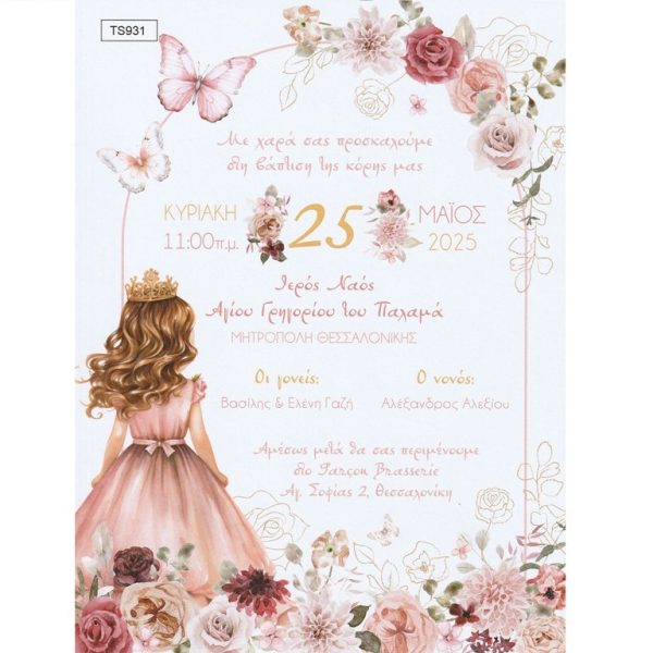 Προσκλητήριο βάπτισης με θέμα Ουράνιο τόξο – Πριγκίπισσα