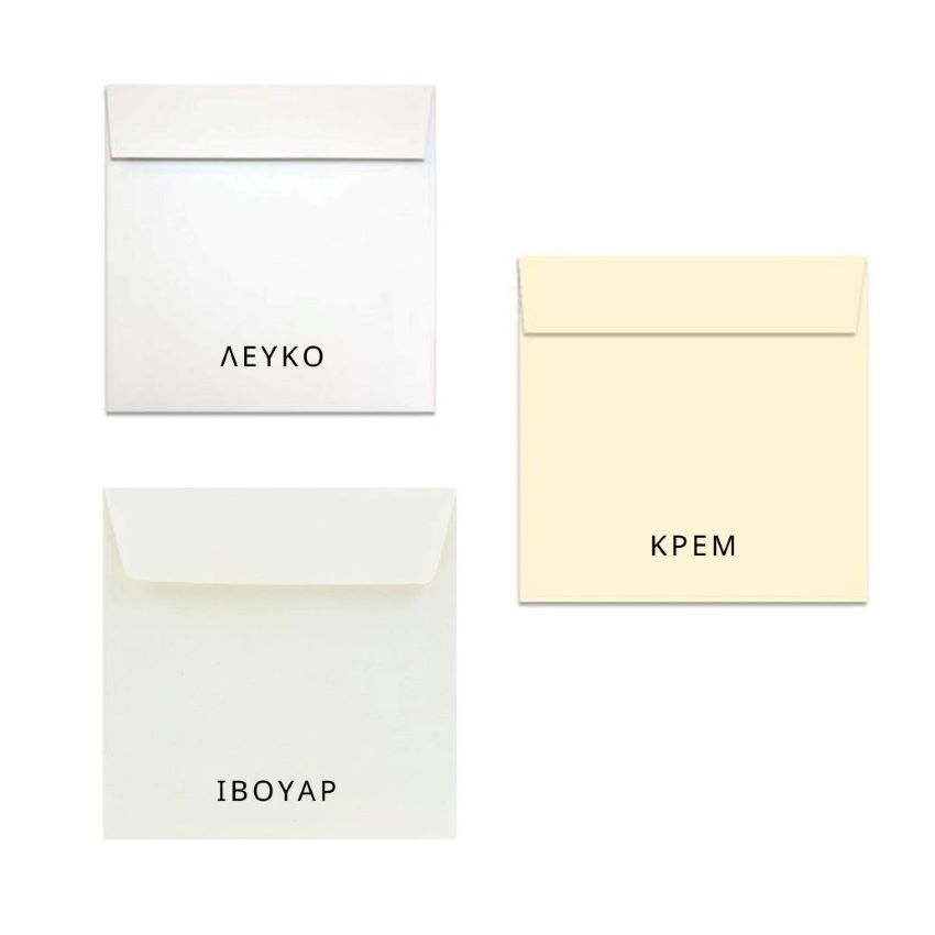 Στην τιμή περιλαμβάνεται φάκελος 16,5 x 16.5 cm. σε απόχρωση ροζ ή φάκελος ακουαρέλας σε εκρού ή κρεμ.