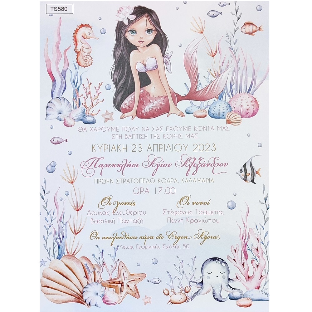 Προσκλητήριο βάπτισης βυθός και γοργόνα