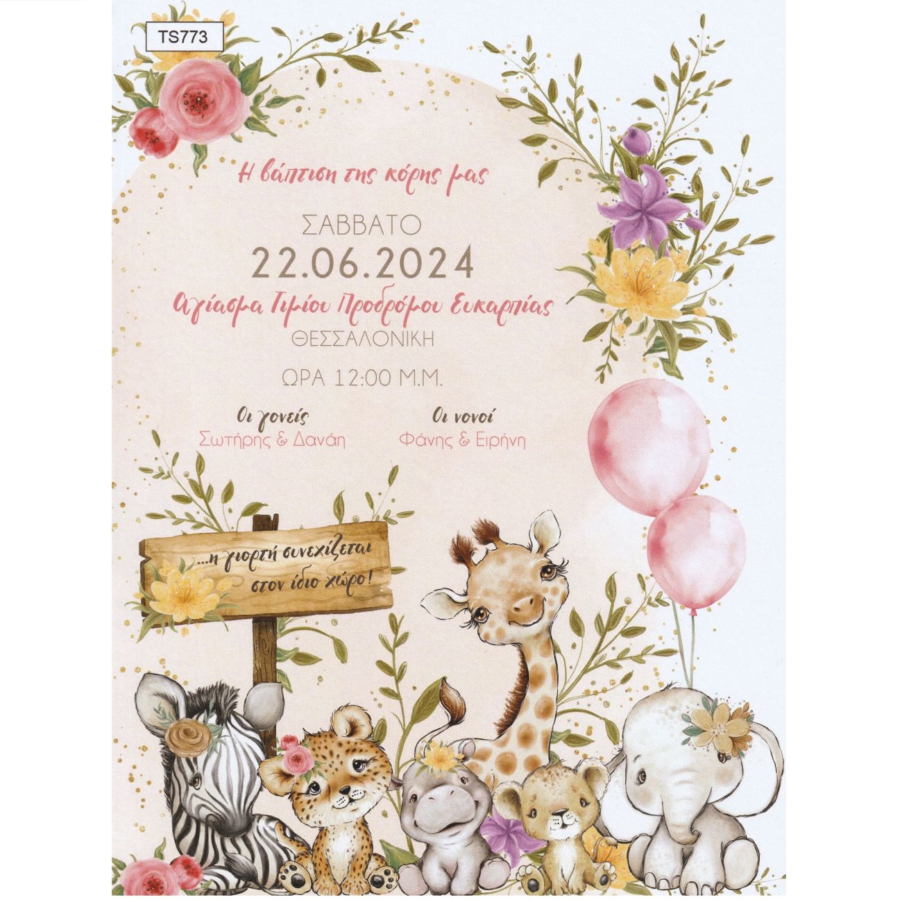 Προσκλητήριο βάπτισης ζούγκλα φλοράλ