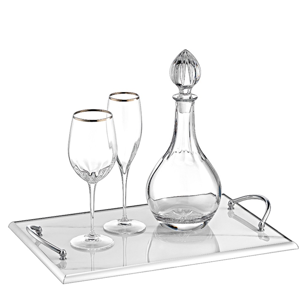 Σετ κουμπάρου τριών τεμαχίων, αποτελούμενο από κρυστάλλινο ποτήρι και καράφα και μοντέρνο δίσκο.