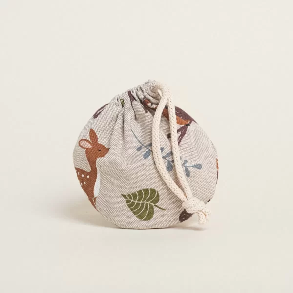 Μπομπονιέρα πουγκί οβάλ με κορδόνι, διαστάσεων 13 x 14 cm, συνδυασμένο με το σετ βάπτισης forest wood animals.