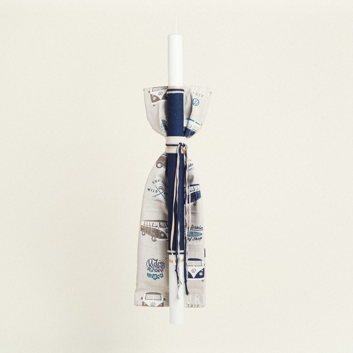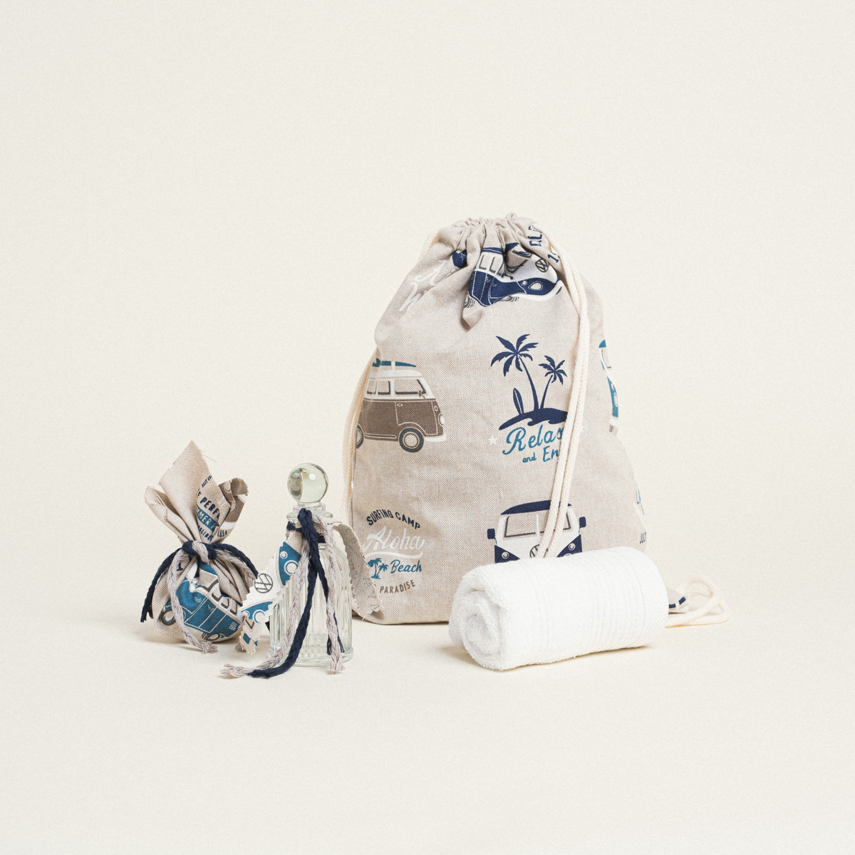 Μπομπονιέρα πουγκί θήκη για μπουκάλι με κορδόνι, διαστάσεων 22 x 12 cm, συνδυασμένο με το vintage σετ βάπτισης Volkswagen.