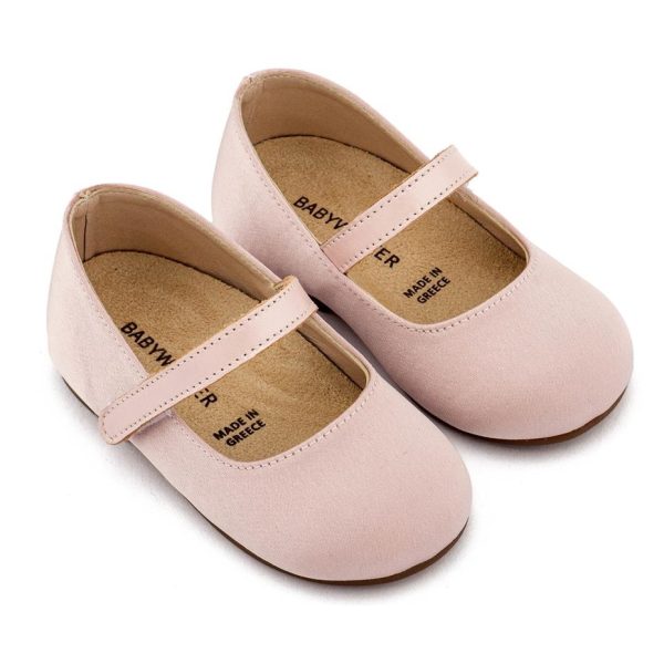 Υφασμάτινο Γοβάκι Μονή Μπαρέτα από Σατέν Ύφασμα σε Ροζ Αντικέ Χρώμα της εταιρίας Babywalker.
