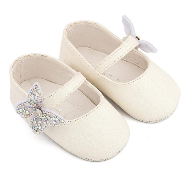 Υφασμάτινο Γοβάκι Μονή Μπαρέτα Χρατς με Στρασένια Πεταλούδα σε Λευκό Χρώμα της εταιρίας Babywalker.
