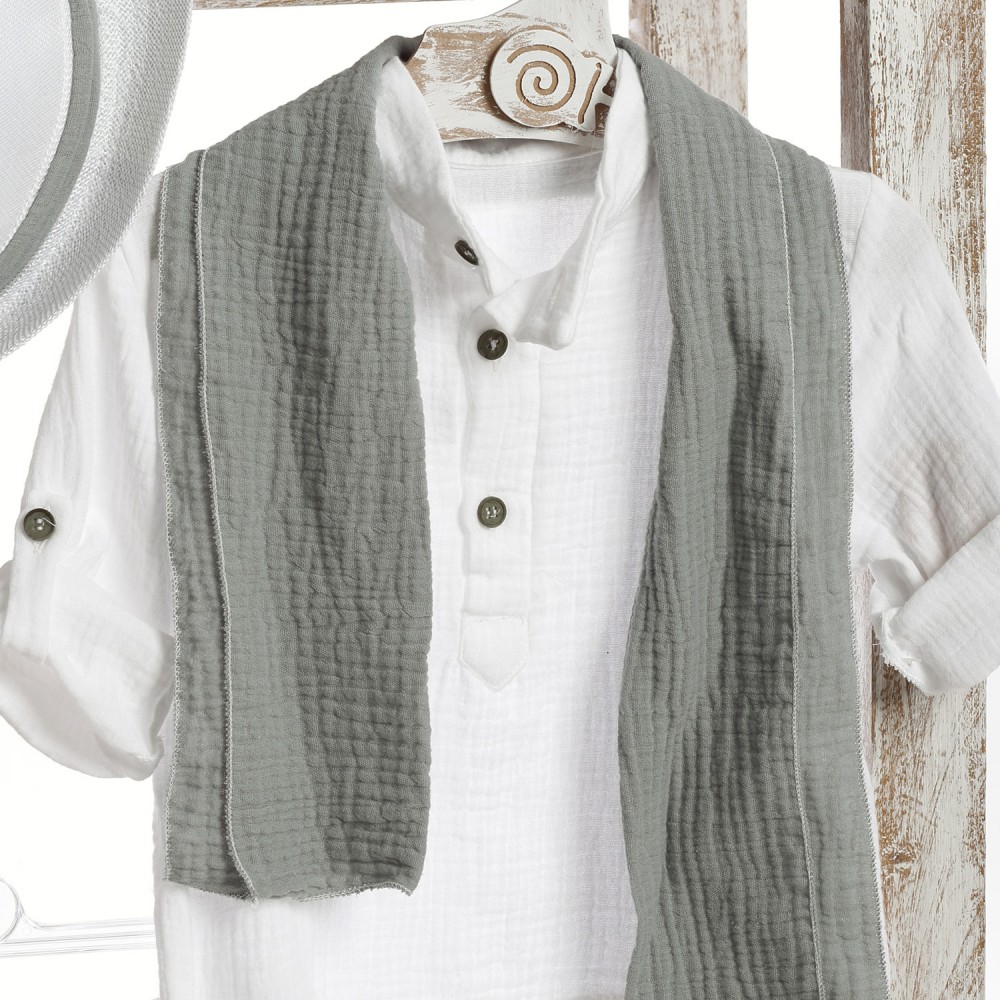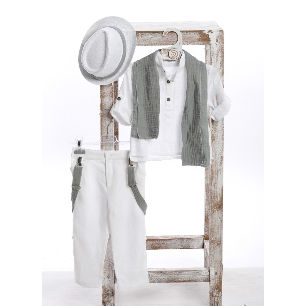 Το σετ περιλαμβάνει: Πουκάμισο, γιλέκο, παντελόνι, φουλάρι και καπελάκι.