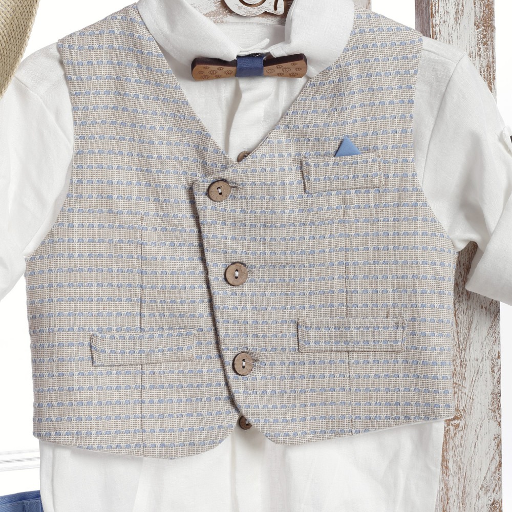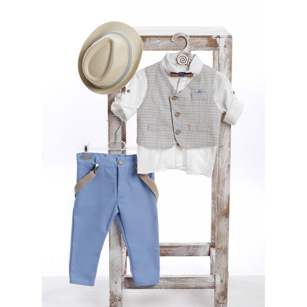 Το σετ περιλαμβάνει: Πουκάμισο, γιλέκο, παντελόνι, παπιγιόν και καπελάκι.