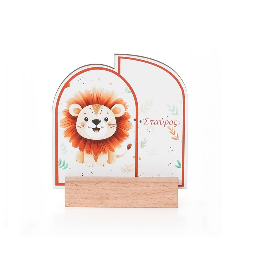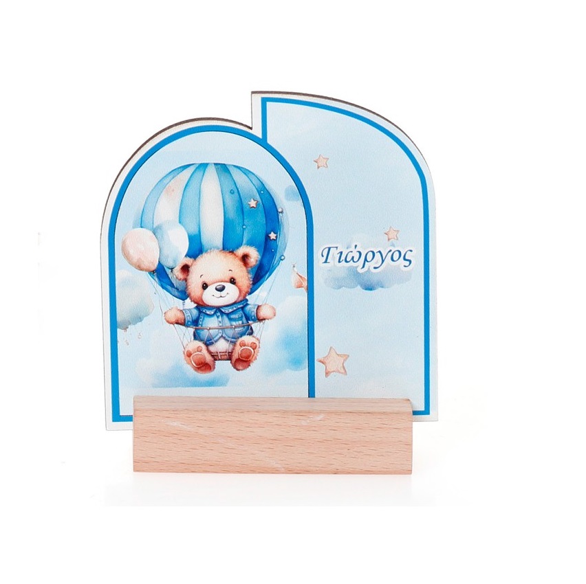 Ξύλινο διακοσμητικό με δυνατότητα προσωποποίησης ονόματος. Τοποθετημένο σε ξύλινη βάση, ιδανικό για τη διακόσμηση του παιδικού δωματίου.